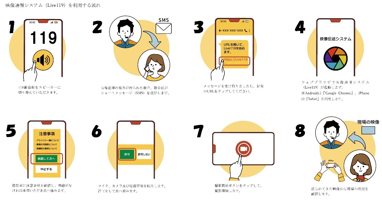 119番通報の際、映像通報システム(Live119)を利用した映像の送信にご協力をお願いすることがあります。